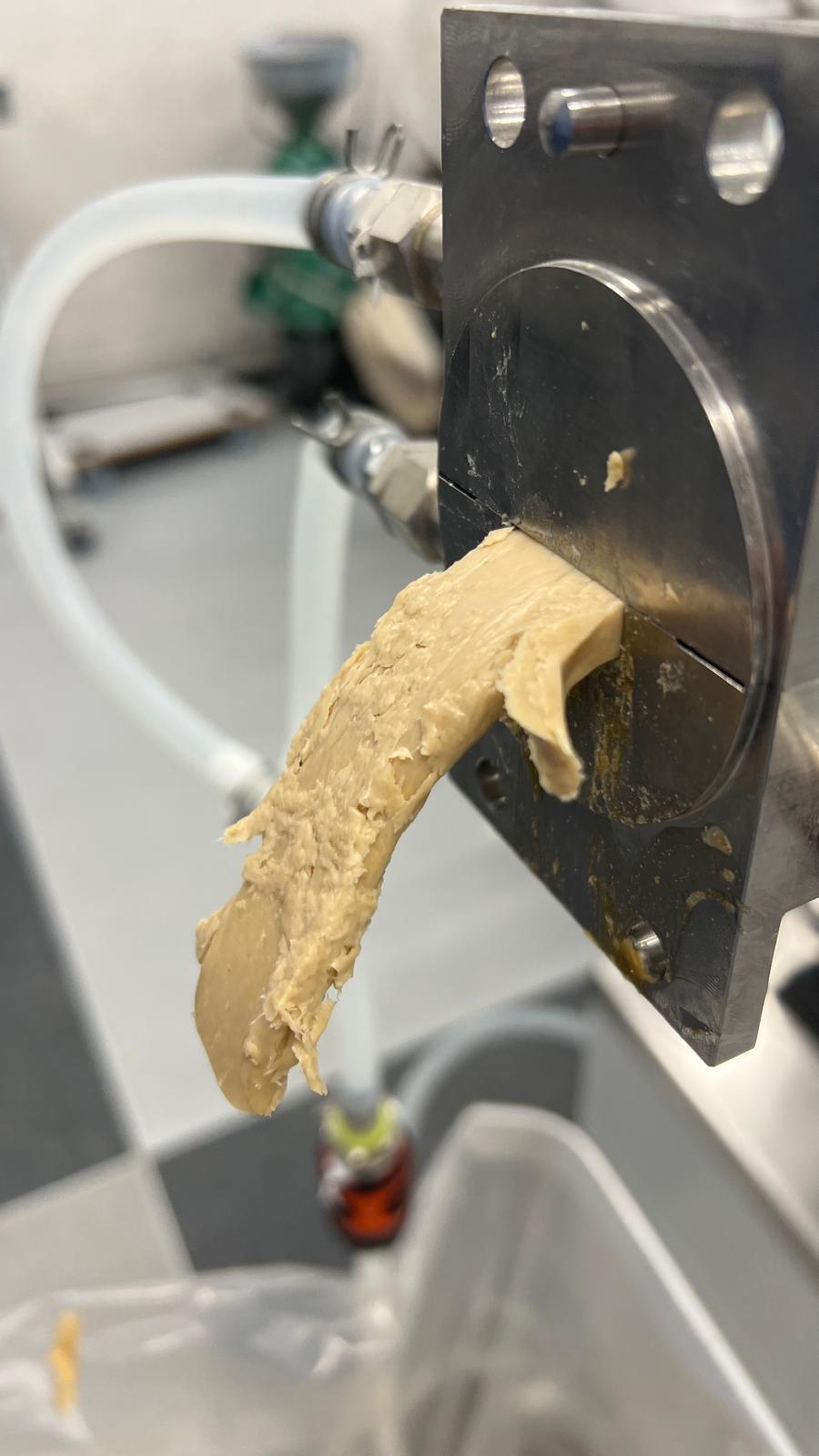 Our plant fiber products are produced via extrusion of pea flour and pea hulls, creating a fibrous, layered structure with versatile textural properties. These extruded ingredients serve as a building block for plant-based food products, adding texture, fiber content, and structure.